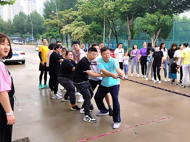 哨聲響起,比賽一觸即發(fā)!大家團(tuán)結(jié)一致努力拼搏著!有的緊握麻繩,咬牙使勁;有的扎穩(wěn)腳步,不可撼動(dòng);有的身體向下傾斜,鉚勁拉繩……大家的勁往一處兒使,心往一處兒聚。全神貫注的眼神、奮力拉扯的身影,無(wú)不彰顯了員工們的意志。